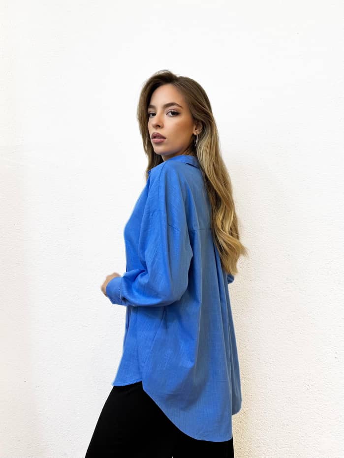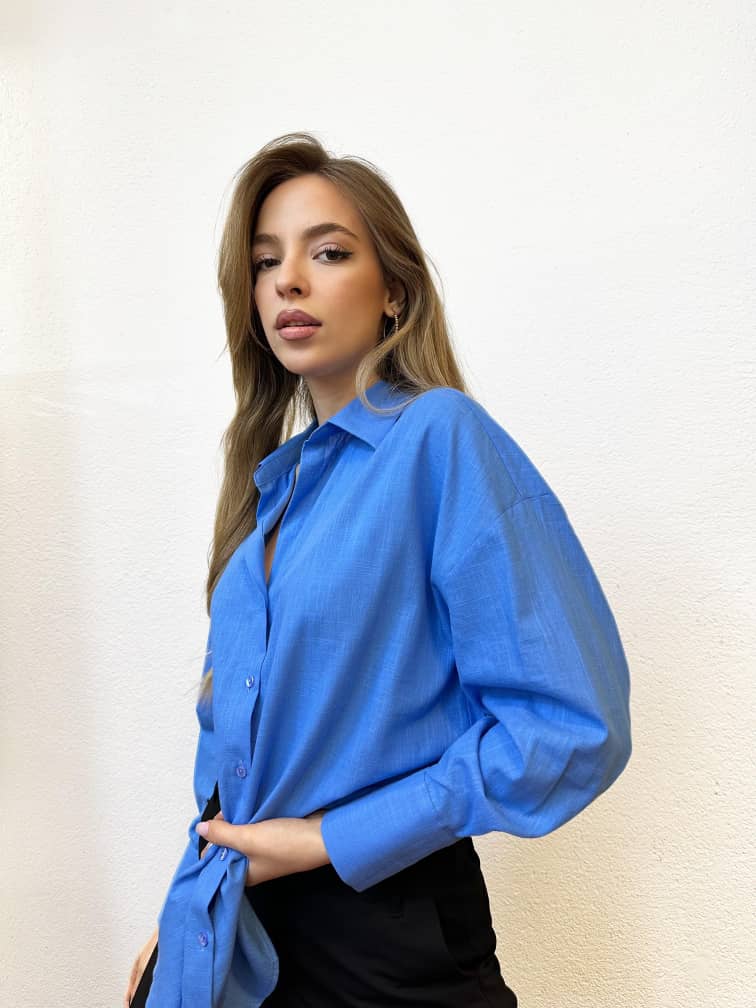 Cette chemise bleu vif est une pièce forte qui allie confort et caractère. Sa coupe oversize et ses manches longues offrent une silhouette fluide et moderne, idéale pour les looks urbains ou les tenues casual chic. Le tissu léger et structuré assure un tombé impeccable, tandis que sa couleur éclatante apporte une touche de fraîcheur à n’importe quelle tenue.